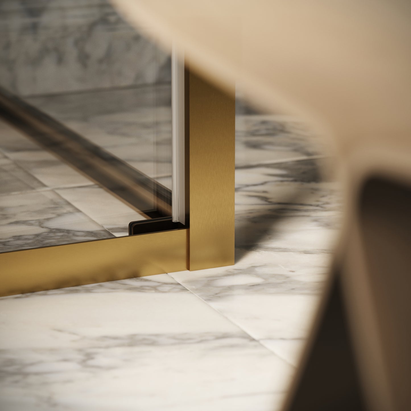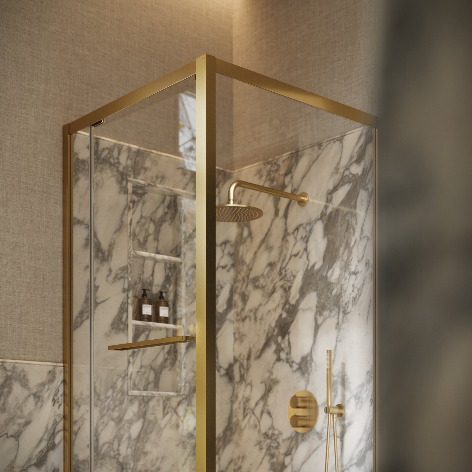 The softly textured brushed gold finish catches the light beautifully, adding depth and a bespoke feel to your interior. Paired with a refined sideways door mechanism, the Reve enclosure combines fluid motion with space saving design, transforming daily routines into moments of indulgence.