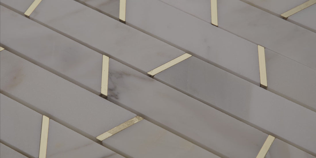 Riviera Calacatta Marble & Brass Mosaic Tile Sample