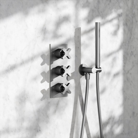 Luxe Brushed Stainless Thermostatic Shower with Handheld ShowerRegular price From £597.00 (£497.50 EX VAT)Sale price From £597.00 (£497.50 EX VAT)Unit price perRegular price From £597.00 (£497.50 EX VAT)Sale price From £597.00 (£497.50 EX VAT)Unit price per