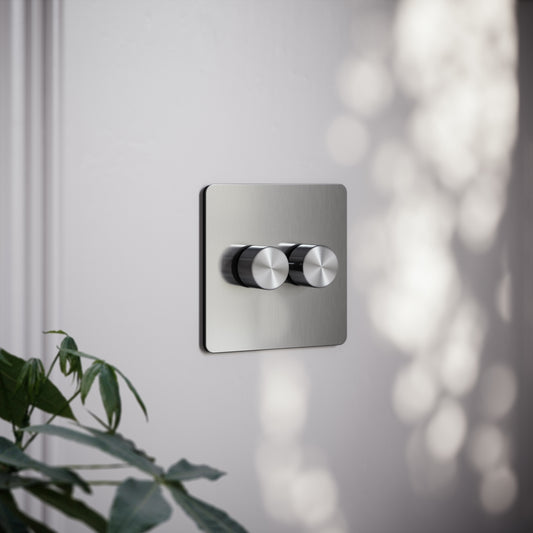 SlimTech Collection Brushed Stainless 2 Gang 2 Way Dimmer SwitchRegular price £20.00 GBP (£16.67 EX VAT)Regular priceUnit price per