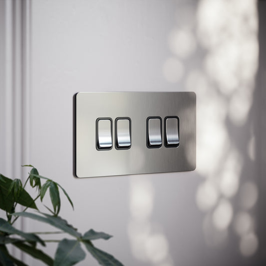 SlimTech Collection Brushed Stainless 4 Gang 2 Way SwitchRegular price £20.00 GBP (£16.67 EX VAT)Regular priceUnit price per