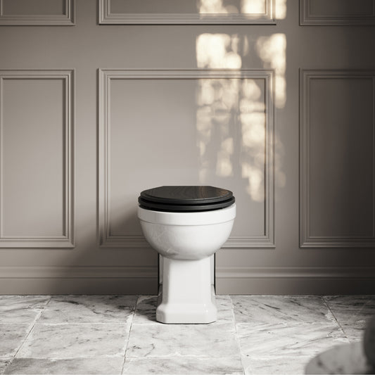 Portland Back to Wall Traditional Toilet with Solid Oak Matte Black Seat (Chrome Fittings)Regular price £377.00 GBP (£314.17 EX VAT)Sale price £377.00 GBP (£314.17 EX VAT)Unit price perRegular price £377.00 GBP (£314.17 EX VAT)Sale price £377.00 GBP (£314.17 EX VAT)Unit price per