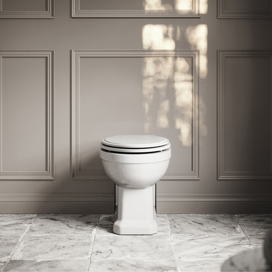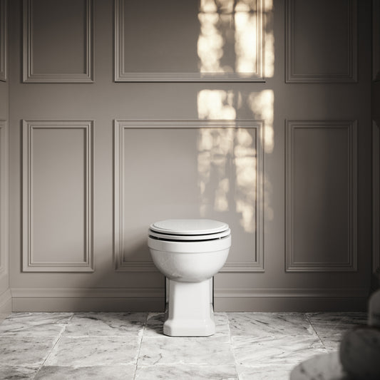 Portland Back to Wall Traditional Toilet with Solid Oak Matte White Seat (Brushed Gold Fittings)Regular price £377.00 GBP (£314.17 EX VAT)Sale price £377.00 GBP (£314.17 EX VAT)Unit price perRegular price £377.00 GBP (£314.17 EX VAT)Sale price £377.00 GBP (£314.17 EX VAT)Unit price per