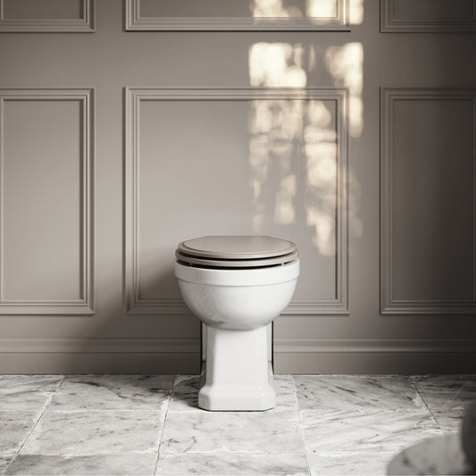 Portland Back to Wall Traditional Toilet with Solid Oak Velvet Beige seat (Chrome Fittings)Regular price £377.00 GBP (£314.17 EX VAT)Sale price £377.00 GBP (£314.17 EX VAT)Unit price perRegular price £377.00 GBP (£314.17 EX VAT)Sale price £377.00 GBP (£314.17 EX VAT)Unit price per