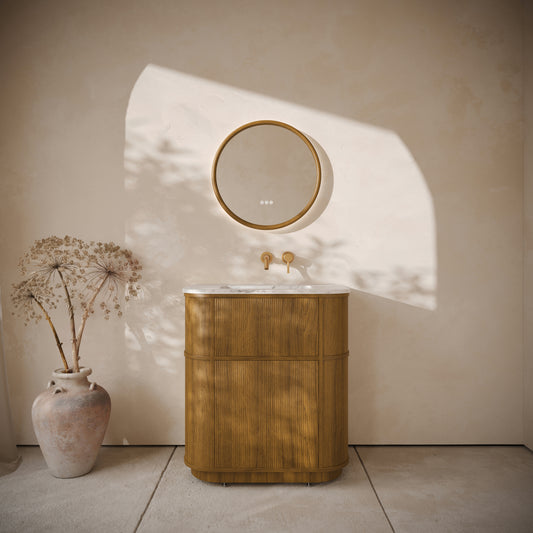 Chic Natural Oak Wood Grain Cylinder Vanity Unit with Stone Basin 450mmRegular price £947.00 GBP (£789.17 EX VAT)Sale price £947.00 GBP (£789.17 EX VAT)Unit price per